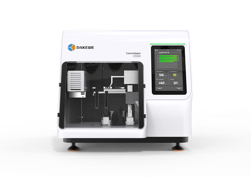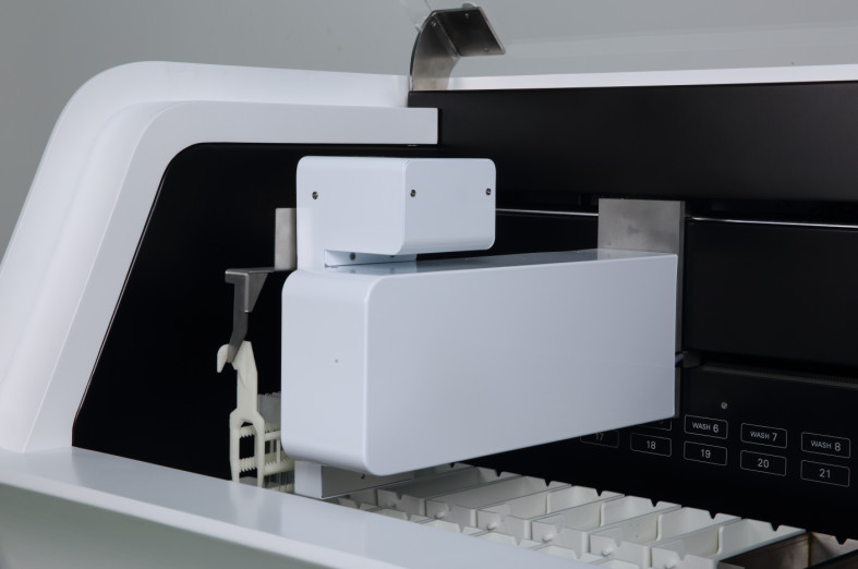 Workstation Slide Stainers & Coverslippers to perform the simultaneous process of 11 H/E staining protocols, cytology and special staining, allows continuous loading and unloading of slides without interrupting the staining cycle up to 360 slides per hour.