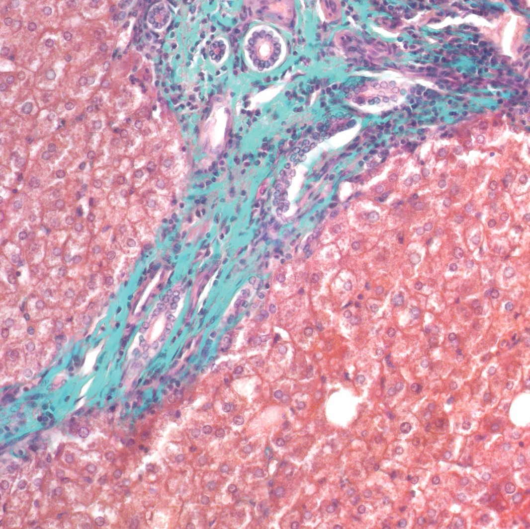 El Kit Tricrómico de Masson-Goldner se utiliza para la visualización de los músculos, las fibras de colágeno, los tejidos conectivos, los gametos, los núcleos, las neurofibrillas, la neuroglía, el colágeno, las fibrillas intracelulares de queratina y la visualización negativa del aparato de Golgi. Representa el método de tinción de fibras musculares y de colágeno en los tejidos durante el cual el colorante Fast Green F.C.F. se une al colágeno haciendo que se vuelva claramente verde. También se utiliza para visualizar el aumento de la acumulación de colágeno asociada al tejido en funcionamiento que se confunde con el tejido cicatricial (diagnóstico de esclerosis hepática), pero también para diferenciar las fibras musculares lisas y los colágenos.