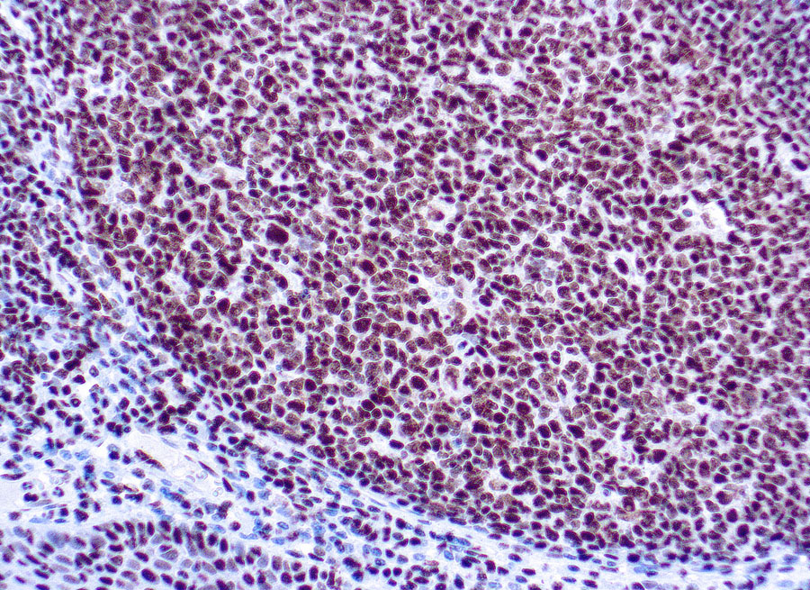 This antibody reacts with a 70 kD protein known as Ku (p70).The Ku protein is localized in the nucleus and is composed of subunits referred to as Ku-70 (or p70) and Ku-86 or (p86). Both subunits of the Ku protein have been cloned, and a number of functions have been proposed for Ku, including cell signaling, DNA replication and transcriptional activation. Ku is involved in Pol II-directed transcription by virtue of its DNA binding activity, serving as the regulatory component of the DNA-associated protein kinase that phosphorylates Pol II and transcription factor Sp.
