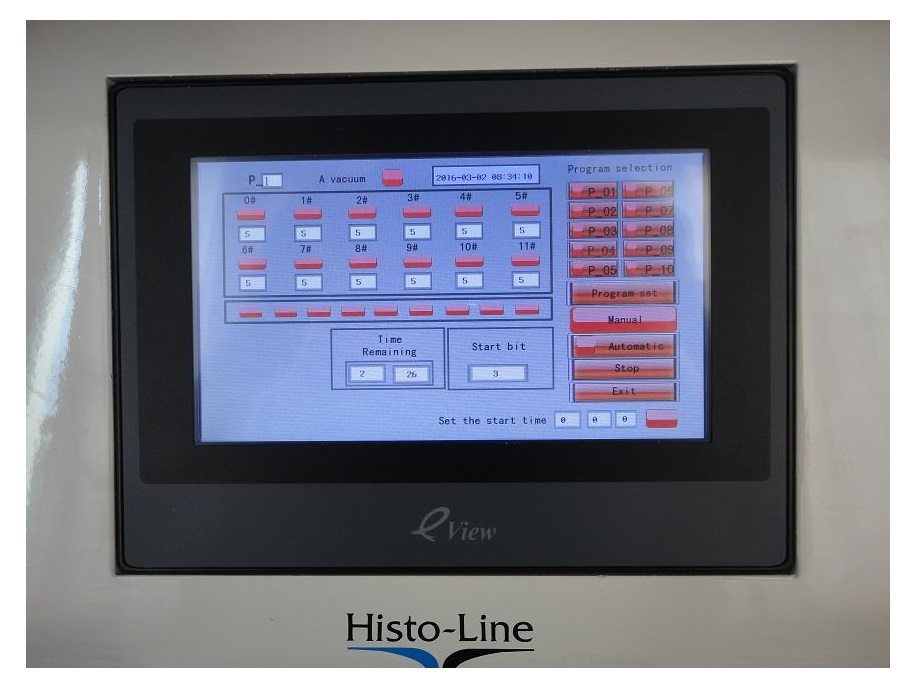Display LCD di facile lettura mostra i parametri della stazione, come il numero di cestelli per preparati, la funzione del vuoto così come il tempo di infiltrazione rimanente, l’orario reale, l’orario di avvio (avvio ritardato), la durata complessiva e l’orario do termine del ciclo. Ciascuno dei programmi può essere personalizzato ed eseguito con avvio immediato o ritardato.